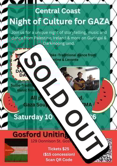 On Friday 10 January, I’ll be performing on the Central Coast as part of Central Coast for Palestine, and the event has now sold out.